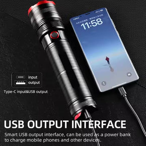 Super Bright Torch Light Type C Rechargeable Long Range Tactical Waterproof Flashlight with Zoom(5 Hours)