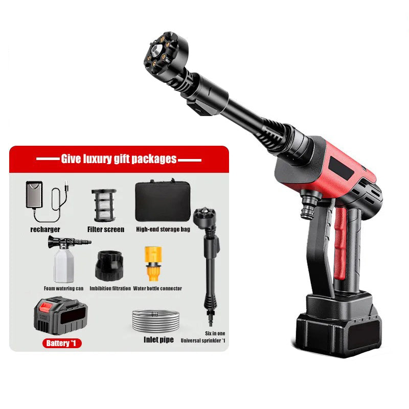 Model No: 48V lithium battery type Battery: 10000mAh Battery life: 48V 60 minutes Power: 400W Peak pressure: 30Bar/435PSI Weight: 2500g Water output: 2.5L/min Size: 35cm * 20cm * 6cm Package includes: 1 set (as shown in the picture) Features: No power cord restriction, more convenient and more.
